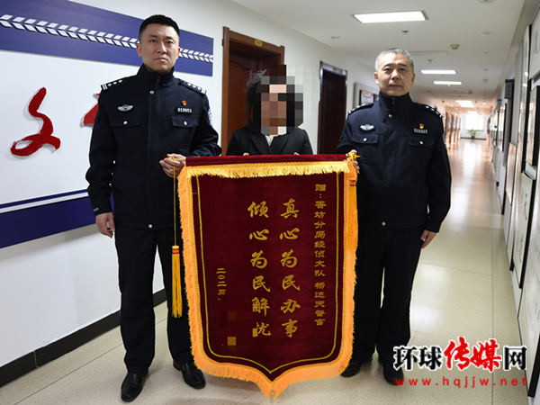 环球传媒网24日讯(郭宪勇 沈正伟)4月7日上午,哈尔滨市公安局香坊分局经侦大队收到了辖区居民梁女士送来的锦旗,以此感谢民警缜密办案,挽回了她18万元的损失。